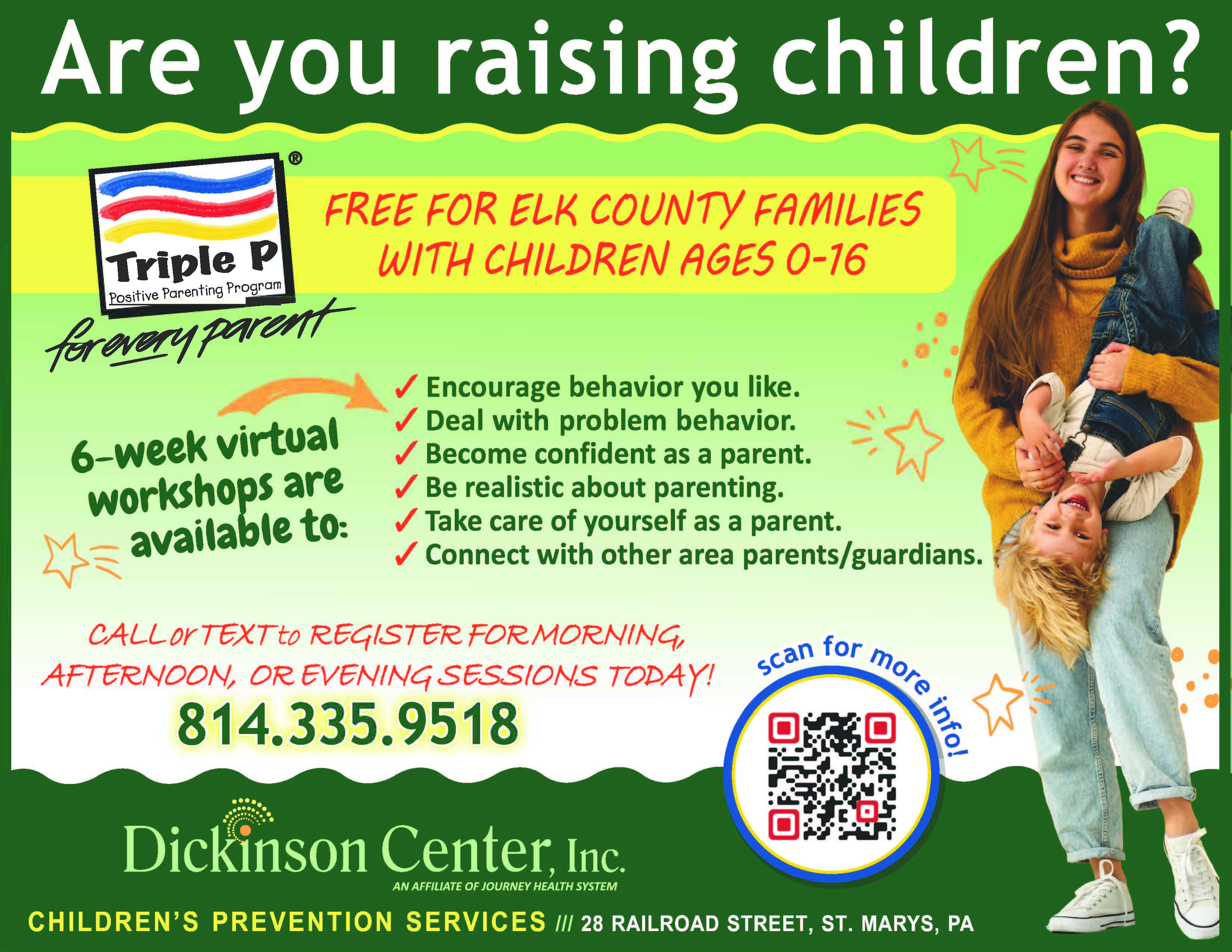 There is no charge for this service. The program is funded by Elk County Children & Youth Services.